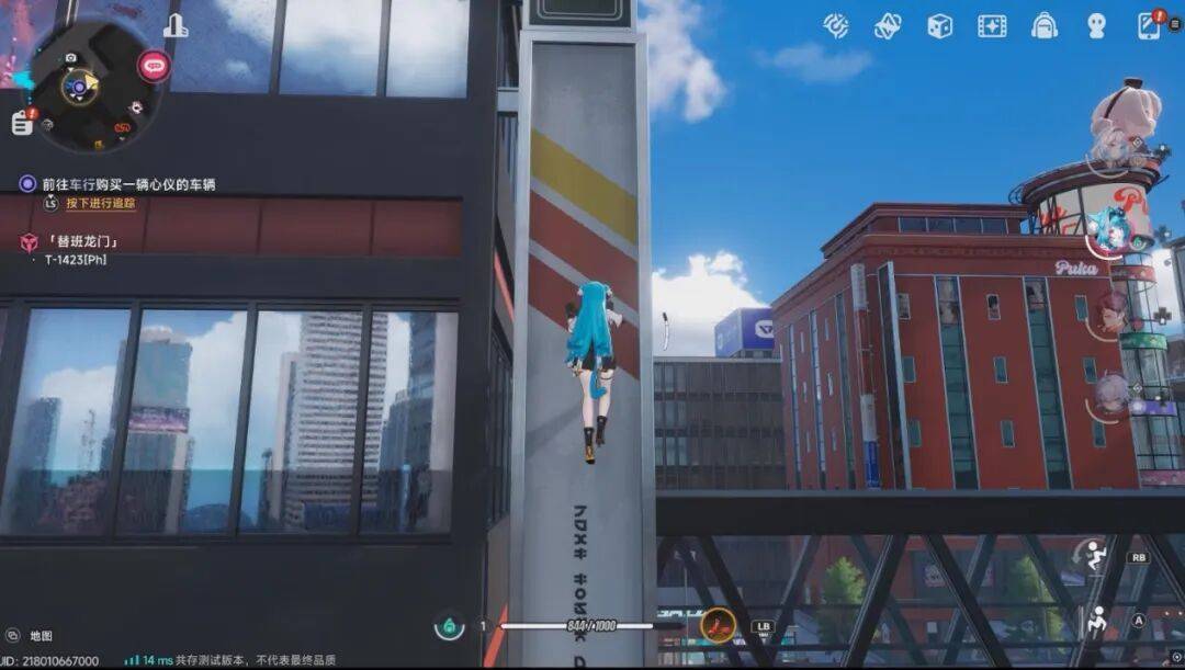 说这话时,我正操纵着“薄荷”在《异环》里爬一座摩天大楼,试图找到制高点,把通往下个目的地的路线摸清楚。目标就位于右前方大楼的楼顶,上面立着一座造型看起来像某位人气Vtuber的雕像。